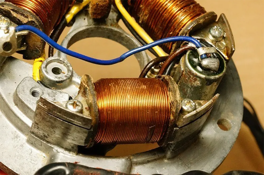 Сердечник статора: составлен из ультратонких листов кремнистой стали толщиной 0,35 мм. 2. Функциональные катушки: 3 комплекта (катушка зажигания, зарядная катушка, триггерная катушка), намотанные жаростойким эмалированным медным проводом 3. Герметизация: фиксируется эпоксидной смолой. |